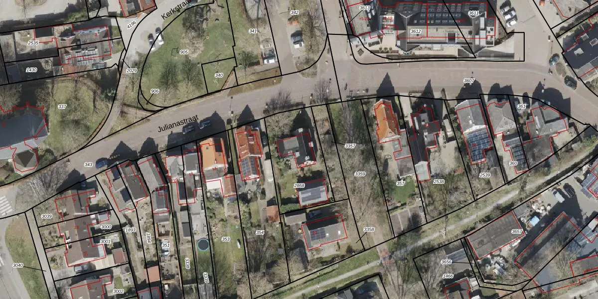 Gebruik de zoekbalk of klik op een perceel voor informatie over de adressen binnen dit perceel.