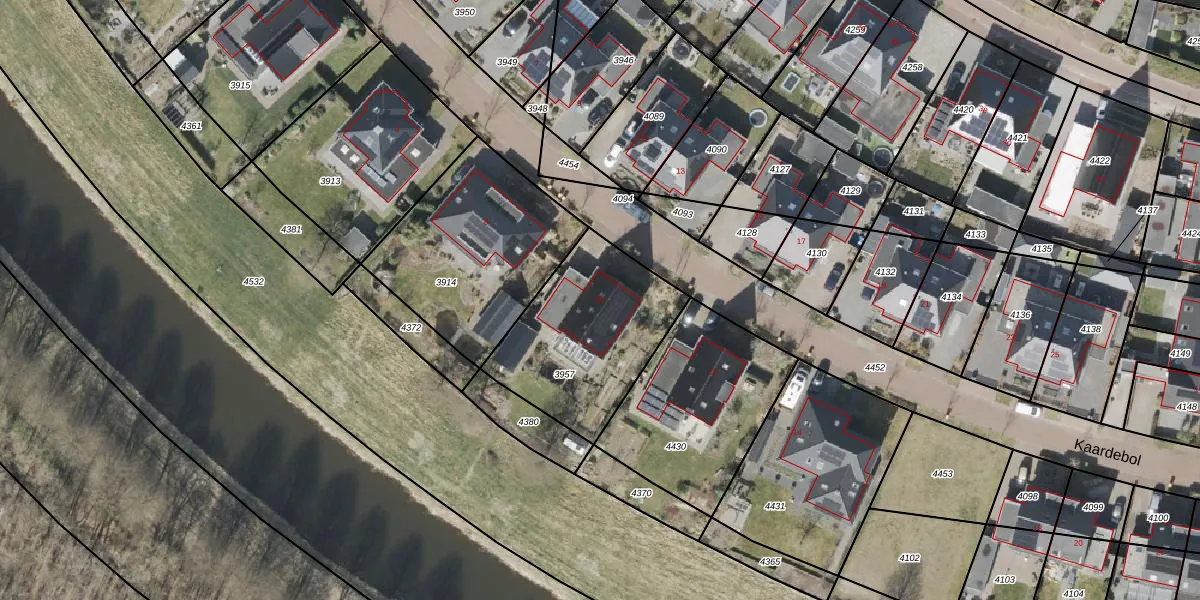 Het perceel waarop Kaardebol 10 staat heeft een oppervlakte van 643 m². Dit is een groot perceel. De perceeloppervlakte wordt geregistreerd door het Kadaster. Gedetailleerde informatie over de maten van dit perceel kunt u vinden in het rapport Kadastrale kaart met maatvoering van Kaardebol 10.