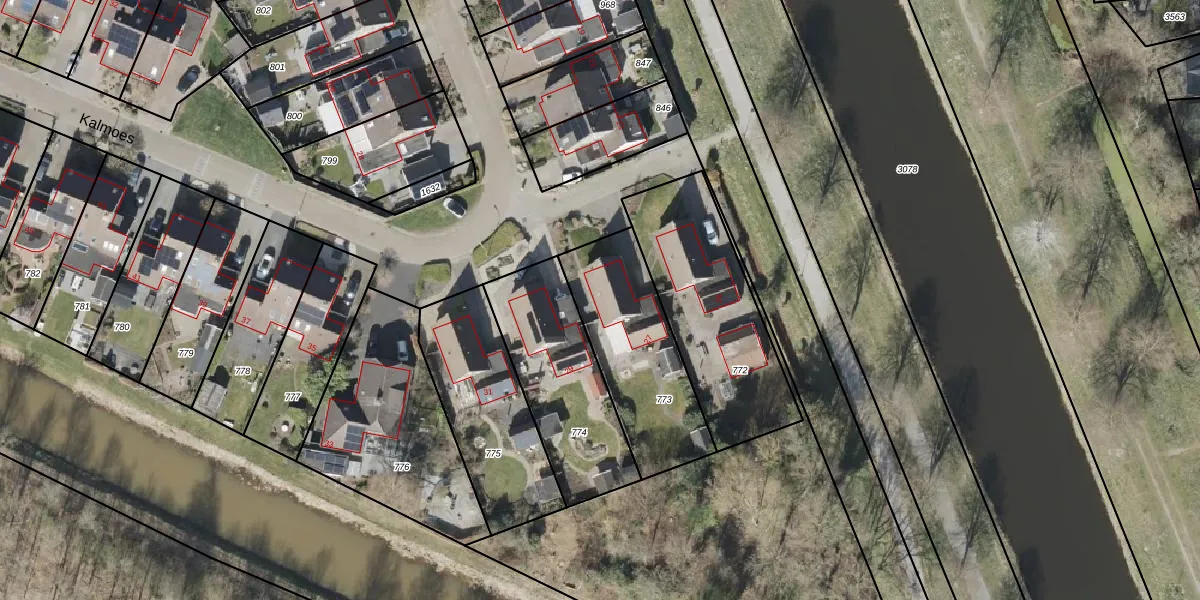 Het perceel waarop Kalmoes 27 staat heeft een oppervlakte van 535 m². Dit is een groot perceel. De perceeloppervlakte wordt geregistreerd door het Kadaster. Gedetailleerde informatie over de maten van dit perceel kunt u vinden in het rapport Kadastrale kaart met maatvoering van Kalmoes 27.