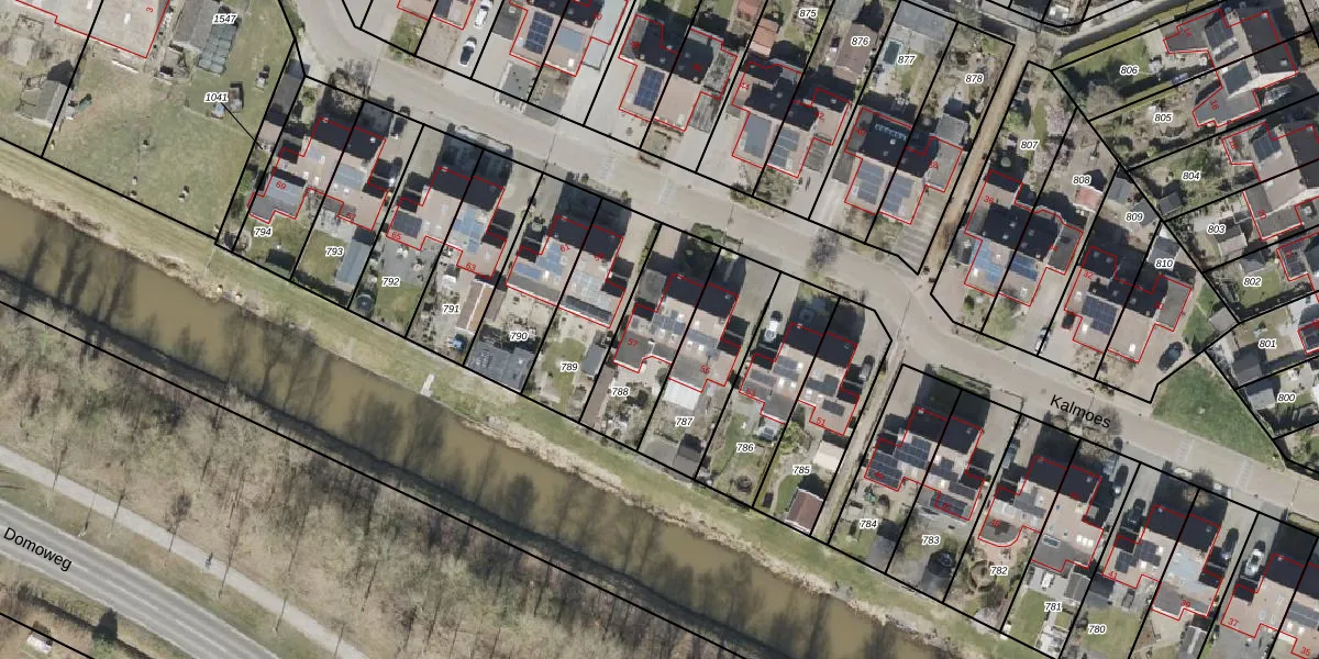 Het perceel waarop Kalmoes 57 staat heeft een oppervlakte van 324 m². Dit is een groot perceel. De perceeloppervlakte wordt geregistreerd door het Kadaster. Gedetailleerde informatie over de maten van dit perceel kunt u vinden in het rapport Kadastrale kaart met maatvoering van Kalmoes 57.