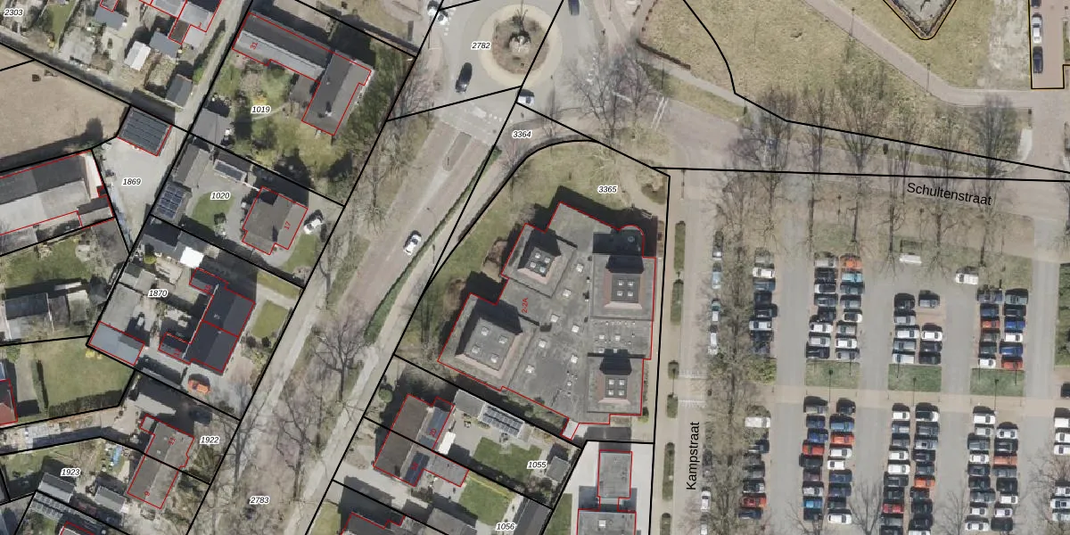 Het perceel waarop Kampstraat 2-A staat heeft een oppervlakte van 2023 m². Dit is een zeer groot perceel. De perceeloppervlakte wordt geregistreerd door het Kadaster. Gedetailleerde informatie over de maten van dit perceel kunt u vinden in het rapport Kadastrale kaart met maatvoering van Kampstraat 2-A.