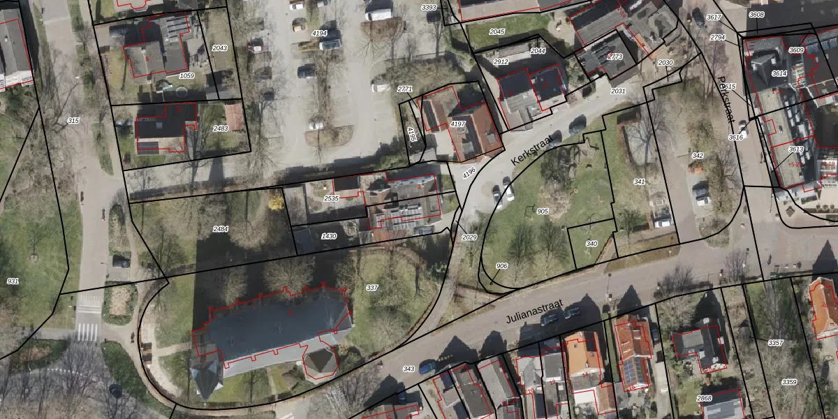 Het perceel waarop Kerkstraat 1 staat heeft een oppervlakte van 312 m². Dit is een groot perceel. De perceeloppervlakte wordt geregistreerd door het Kadaster. Gedetailleerde informatie over de maten van dit perceel kunt u vinden in het rapport Kadastrale kaart met maatvoering van Kerkstraat 1.