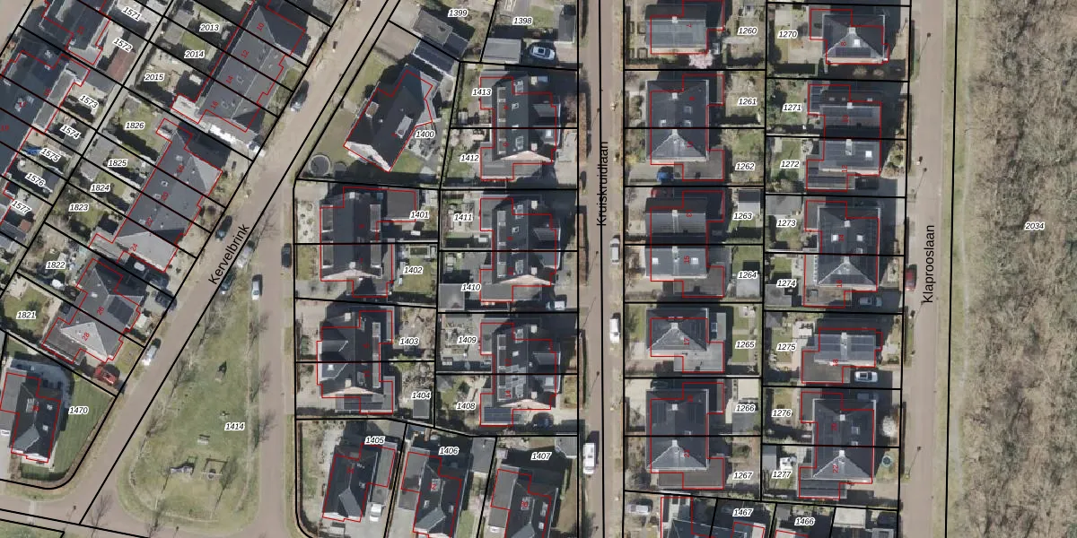 Gebruik de zoekbalk of klik op een perceel voor informatie over de adressen binnen dit perceel.
