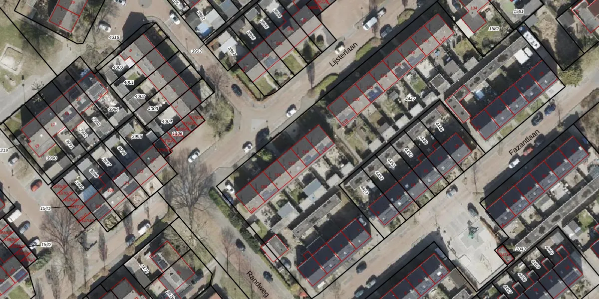 Het perceel waarop Lijsterlaan 114 staat heeft een oppervlakte van 4044 m². Dit is een zeer groot perceel. De perceeloppervlakte wordt geregistreerd door het Kadaster. Gedetailleerde informatie over de maten van dit perceel kunt u vinden in het rapport Kadastrale kaart met maatvoering van Lijsterlaan 114.