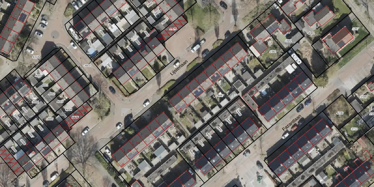 Het perceel waarop Lijsterlaan 120 staat heeft een oppervlakte van 4044 m². Dit is een zeer groot perceel. De perceeloppervlakte wordt geregistreerd door het Kadaster. Gedetailleerde informatie over de maten van dit perceel kunt u vinden in het rapport Kadastrale kaart met maatvoering van Lijsterlaan 120.