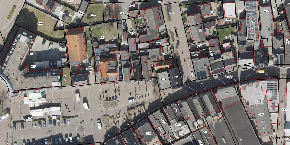 Het perceel waarop Markt 5 staat heeft een oppervlakte van 283 m². Dit is een middelgroot perceel. De perceeloppervlakte wordt geregistreerd door het Kadaster. Gedetailleerde informatie over de maten van dit perceel kunt u vinden in het rapport Kadastrale kaart met maatvoering van Markt 5.
