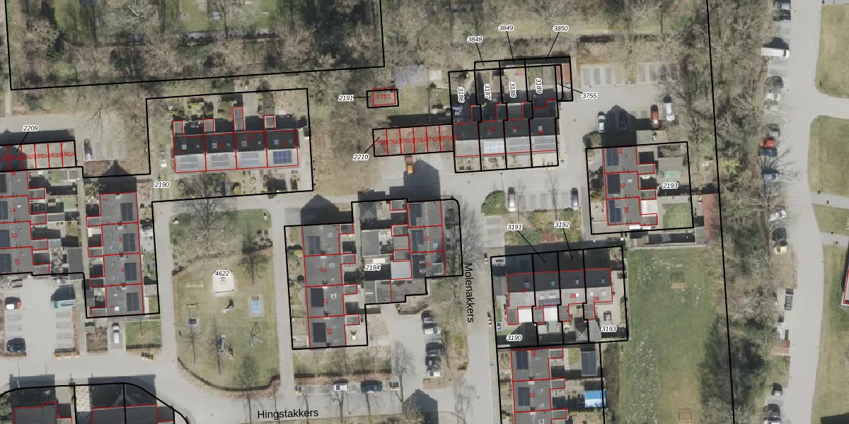 Het perceel waarop Molenakkers 25 staat heeft een oppervlakte van 1025 m². Dit is een zeer groot perceel. De perceeloppervlakte wordt geregistreerd door het Kadaster. Gedetailleerde informatie over de maten van dit perceel kunt u vinden in het rapport Kadastrale kaart met maatvoering van Molenakkers 25.