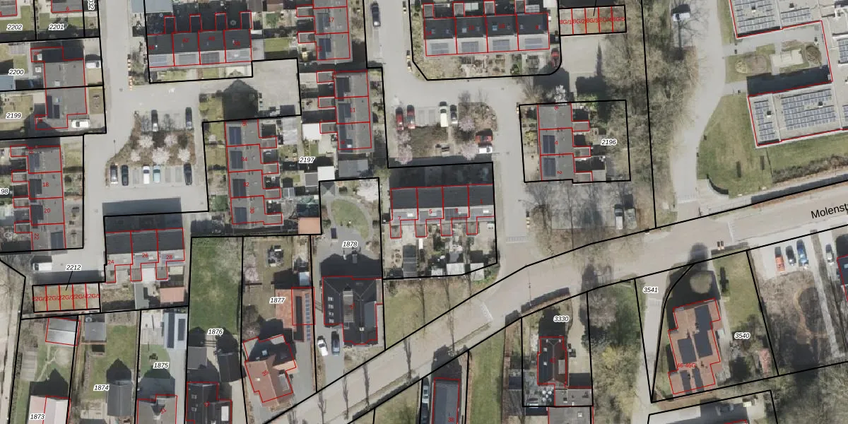 Het perceel waarop Molenakkers 5 staat heeft een oppervlakte van 3440 m². Dit is een zeer groot perceel. De perceeloppervlakte wordt geregistreerd door het Kadaster. Gedetailleerde informatie over de maten van dit perceel kunt u vinden in het rapport Kadastrale kaart met maatvoering van Molenakkers 5.