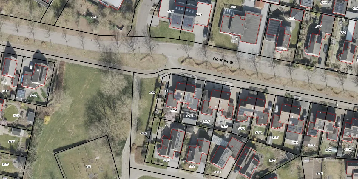 Het perceel waarop Noordveen 14 staat heeft een oppervlakte van 259 m². Dit is een middelgroot perceel. De perceeloppervlakte wordt geregistreerd door het Kadaster. Gedetailleerde informatie over de maten van dit perceel kunt u vinden in het rapport Kadastrale kaart met maatvoering van Noordveen 14.
