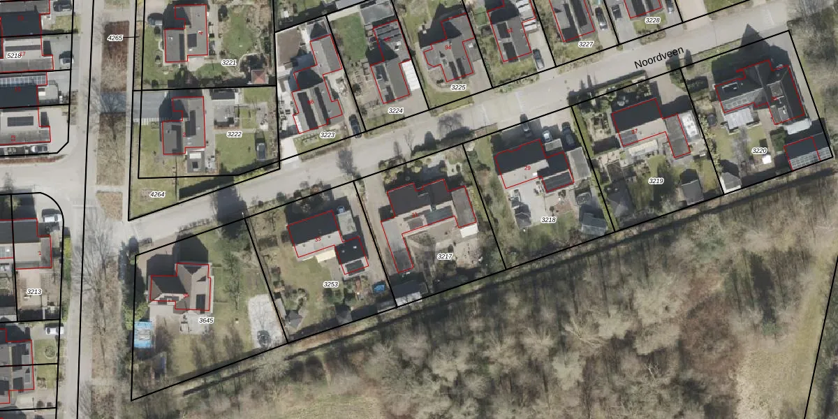 Het perceel waarop Noordveen 31 staat heeft een oppervlakte van 876 m². Dit is een groot perceel. De perceeloppervlakte wordt geregistreerd door het Kadaster. Gedetailleerde informatie over de maten van dit perceel kunt u vinden in het rapport Kadastrale kaart met maatvoering van Noordveen 31.