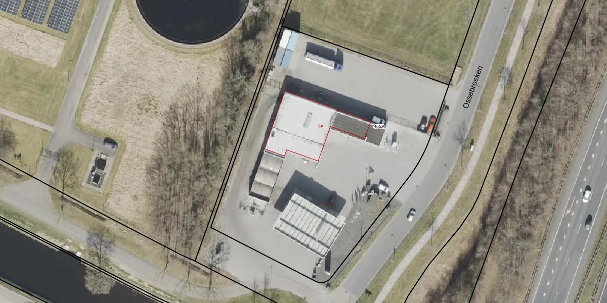 Het perceel waarop Ossebroeken 8-A staat heeft een oppervlakte van 3906 m². Dit is een zeer groot perceel. De perceeloppervlakte wordt geregistreerd door het Kadaster. Gedetailleerde informatie over de maten van dit perceel kunt u vinden in het rapport Kadastrale kaart met maatvoering van Ossebroeken 8-A.