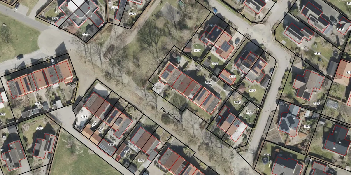 Het perceel waarop Papenkamp 12 staat heeft een oppervlakte van 1125 m². Dit is een zeer groot perceel. De perceeloppervlakte wordt geregistreerd door het Kadaster. Gedetailleerde informatie over de maten van dit perceel kunt u vinden in het rapport Kadastrale kaart met maatvoering van Papenkamp 12.