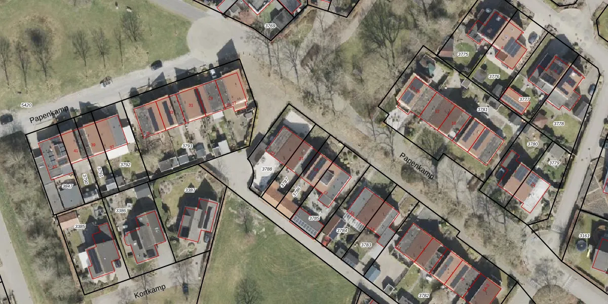 Het perceel waarop Papenkamp 21 staat heeft een oppervlakte van 181 m². Dit is een middelgroot perceel. De perceeloppervlakte wordt geregistreerd door het Kadaster. Gedetailleerde informatie over de maten van dit perceel kunt u vinden in het rapport Kadastrale kaart met maatvoering van Papenkamp 21.
