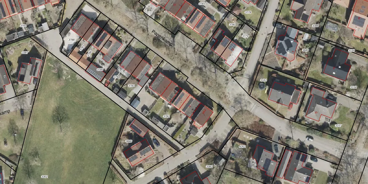 Het perceel waarop Papenkamp 7 staat heeft een oppervlakte van 1236 m². Dit is een zeer groot perceel. De perceeloppervlakte wordt geregistreerd door het Kadaster. Gedetailleerde informatie over de maten van dit perceel kunt u vinden in het rapport Kadastrale kaart met maatvoering van Papenkamp 7.
