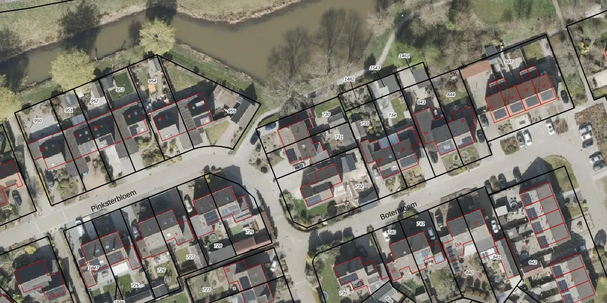 Gebruik de zoekbalk of klik op een perceel voor informatie over de adressen binnen dit perceel.