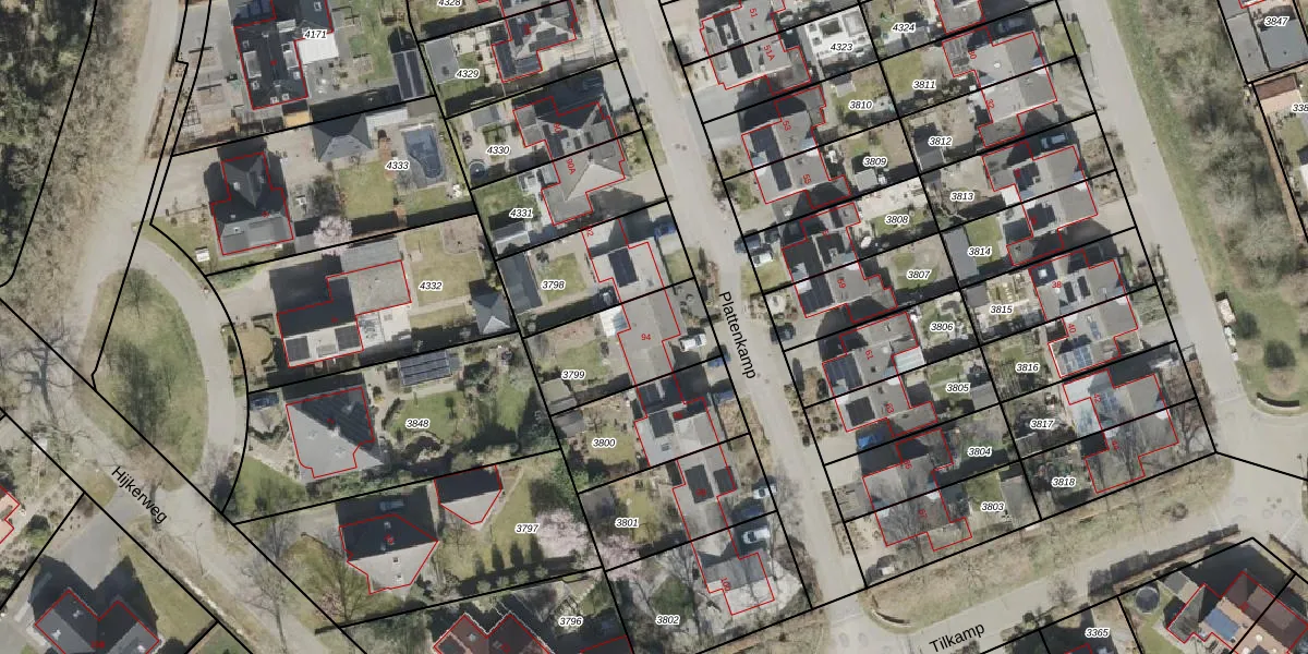 Het perceel waarop Plattenkamp 94 staat heeft een oppervlakte van 353 m². Dit is een groot perceel. De perceeloppervlakte wordt geregistreerd door het Kadaster. Gedetailleerde informatie over de maten van dit perceel kunt u vinden in het rapport Kadastrale kaart met maatvoering van Plattenkamp 94.