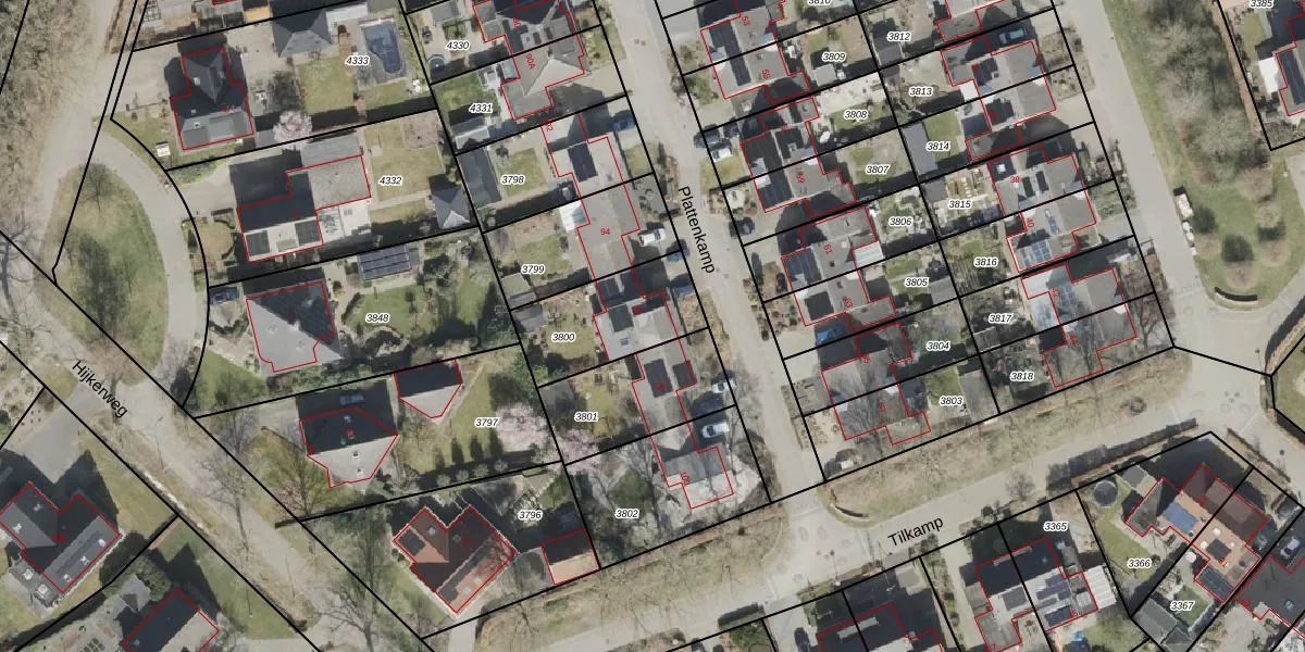 Het perceel waarop Plattenkamp 96 staat heeft een oppervlakte van 353 m². Dit is een groot perceel. De perceeloppervlakte wordt geregistreerd door het Kadaster. Gedetailleerde informatie over de maten van dit perceel kunt u vinden in het rapport Kadastrale kaart met maatvoering van Plattenkamp 96.