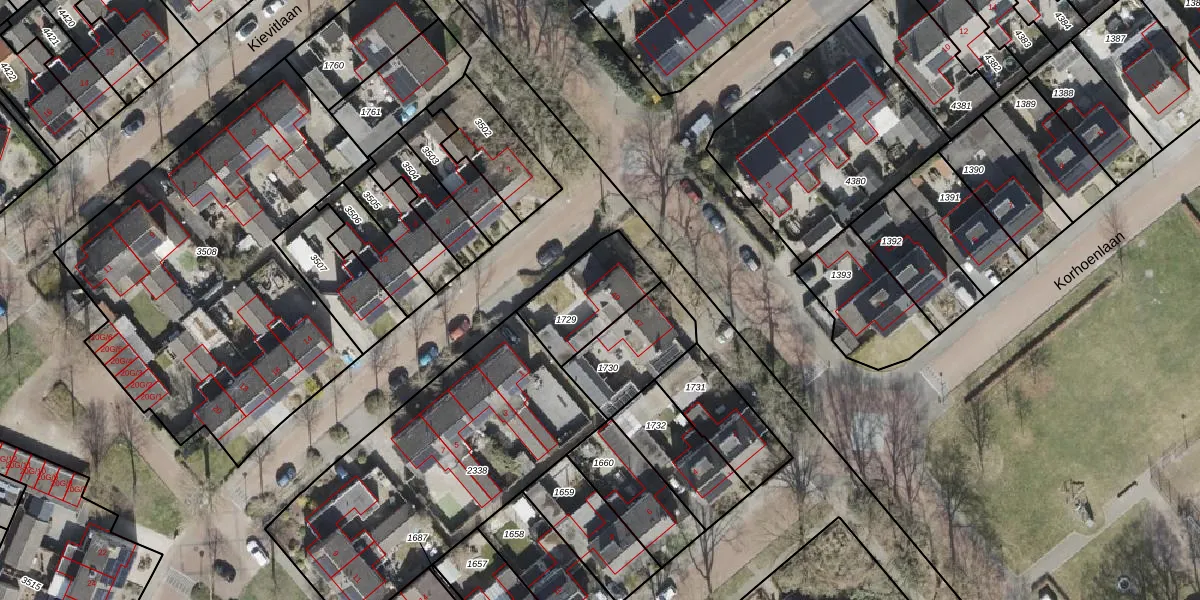 Gebruik de zoekbalk of klik op een perceel voor informatie over de adressen binnen dit perceel.