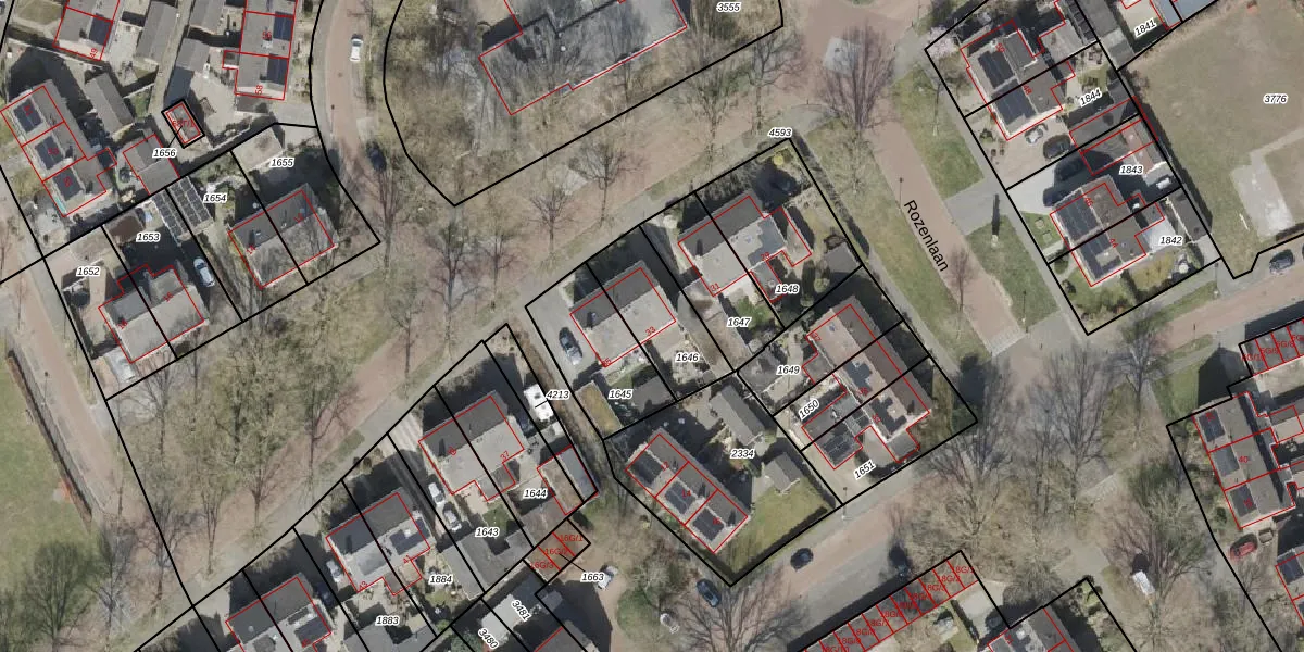 Gebruik de zoekbalk of klik op een perceel voor informatie over de adressen binnen dit perceel.
