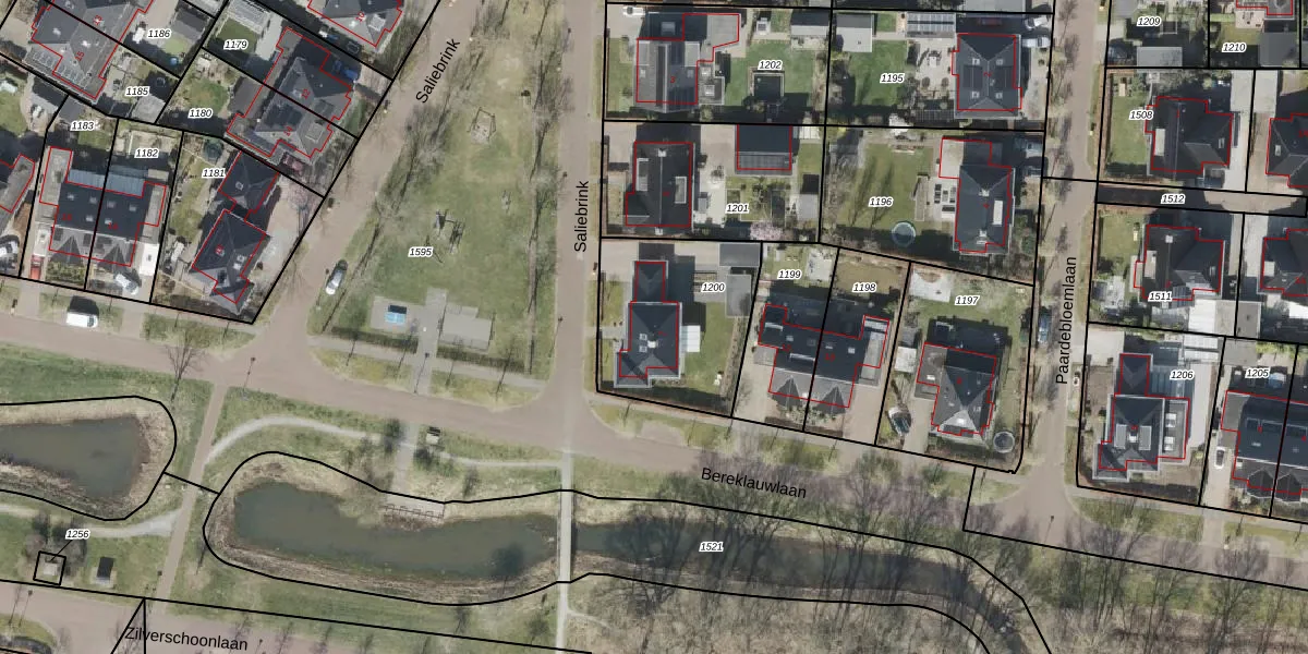 Het perceel waarop Saliebrink 7 staat heeft een oppervlakte van 584 m². Dit is een groot perceel. De perceeloppervlakte wordt geregistreerd door het Kadaster. Gedetailleerde informatie over de maten van dit perceel kunt u vinden in het rapport Kadastrale kaart met maatvoering van Saliebrink 7.