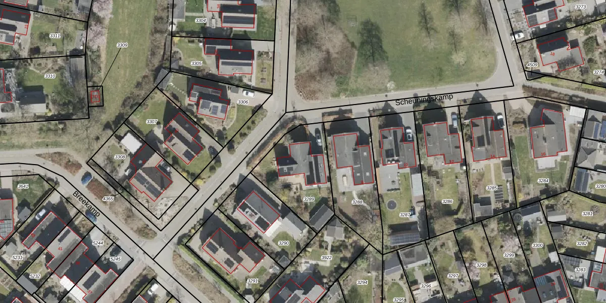 Gebruik de zoekbalk of klik op een perceel voor informatie over de adressen binnen dit perceel.
