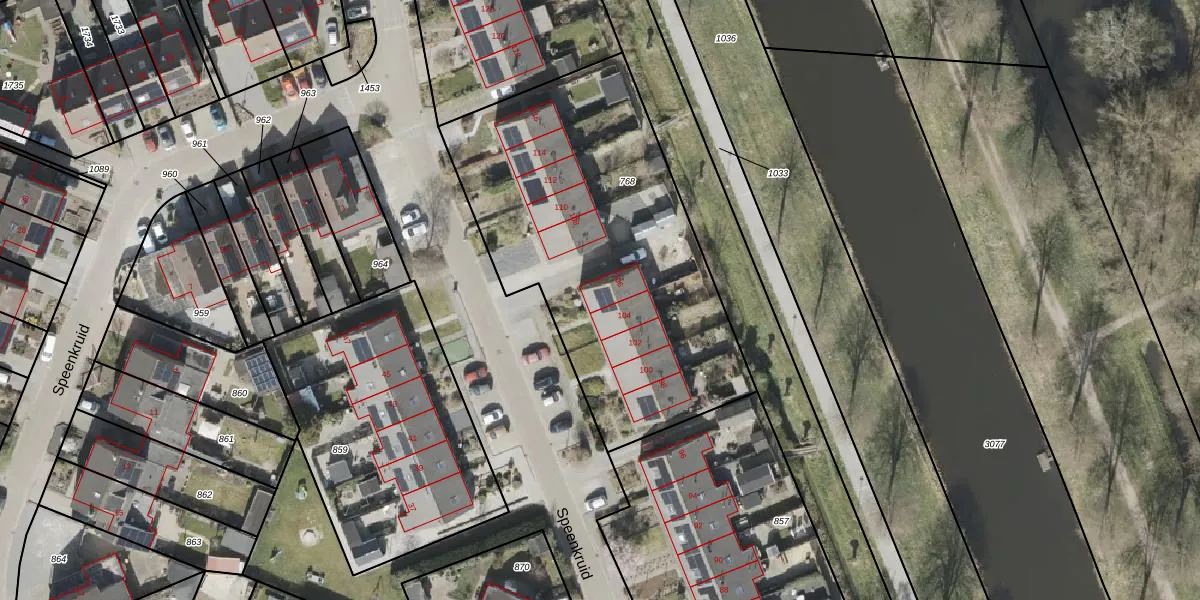 Speenkruid 106 is gelegen op kadastraal perceel BLN00V768. Deze kadastrale aanduiding is uniek en wordt gebruikt door het Kadaster om eigendomsrechten en andere zakelijke rechten vast te leggen. Het perceel maakt onderdeel uit van de kadastrale gemeente Beilen.