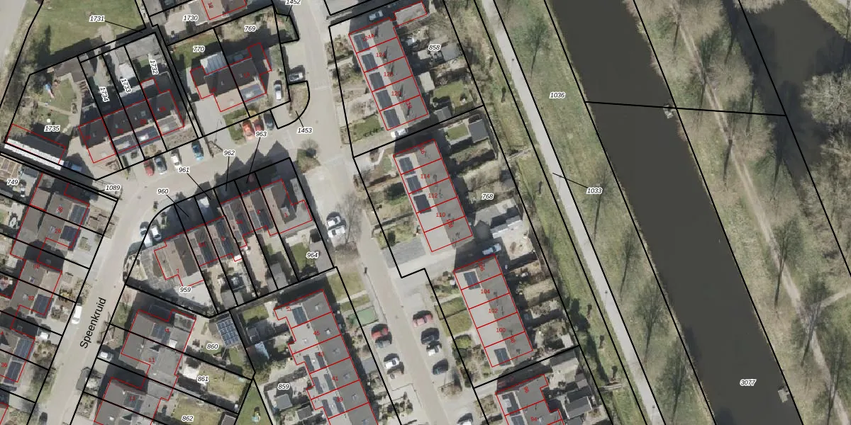 Speenkruid 110 is gelegen op kadastraal perceel BLN00V768. Deze kadastrale aanduiding is uniek en wordt gebruikt door het Kadaster om eigendomsrechten en andere zakelijke rechten vast te leggen. Het perceel maakt onderdeel uit van de kadastrale gemeente Beilen.