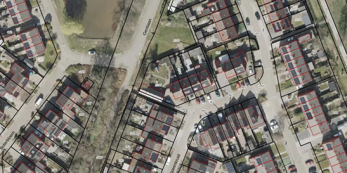 Het perceel waarop Speenkruid 24 staat heeft een oppervlakte van 471 m². Dit is een groot perceel. De perceeloppervlakte wordt geregistreerd door het Kadaster. Gedetailleerde informatie over de maten van dit perceel kunt u vinden in het rapport Kadastrale kaart met maatvoering van Speenkruid 24.
