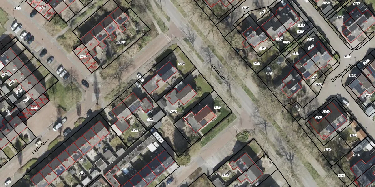 Het perceel waarop Sportlaan 43 staat heeft een oppervlakte van 615 m². Dit is een groot perceel. De perceeloppervlakte wordt geregistreerd door het Kadaster. Gedetailleerde informatie over de maten van dit perceel kunt u vinden in het rapport Kadastrale kaart met maatvoering van Sportlaan 43.
