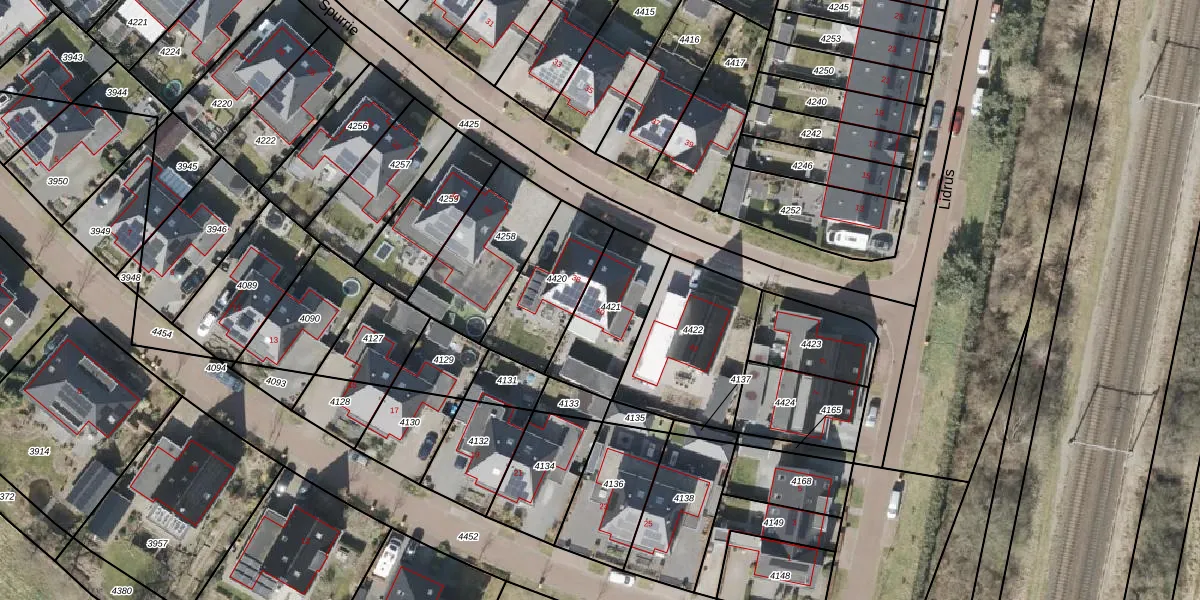 Het perceel waarop Spurrie 40 staat heeft een oppervlakte van 300 m². Dit is een groot perceel. De perceeloppervlakte wordt geregistreerd door het Kadaster. Gedetailleerde informatie over de maten van dit perceel kunt u vinden in het rapport Kadastrale kaart met maatvoering van Spurrie 40.