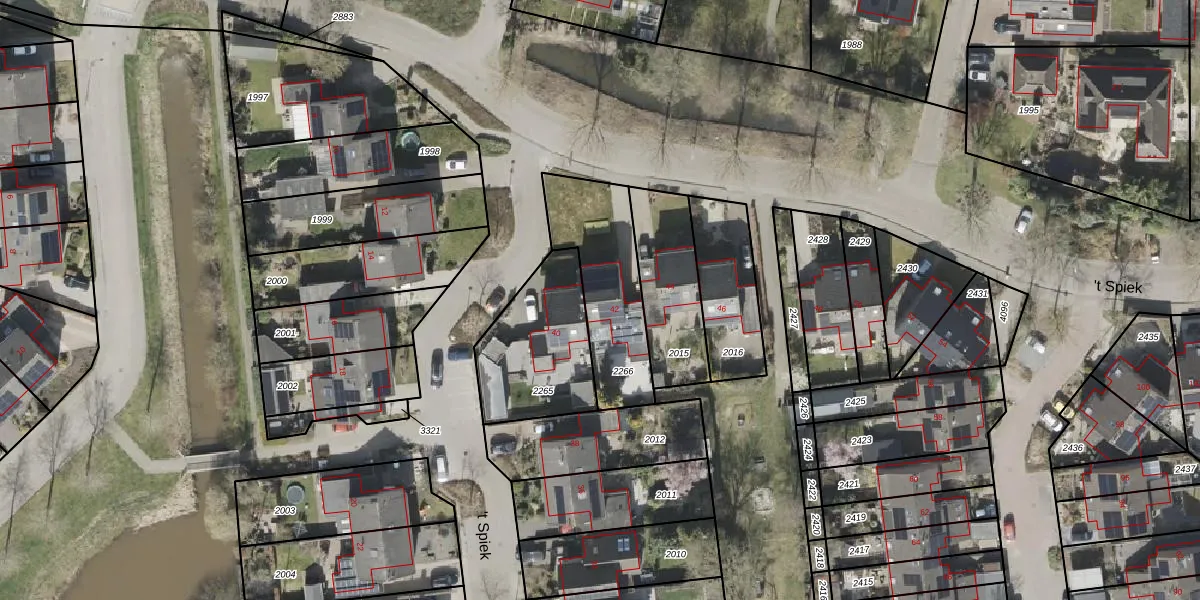 Het perceel waarop 't Spiek 42 staat heeft een oppervlakte van 416 m². Dit is een groot perceel. De perceeloppervlakte wordt geregistreerd door het Kadaster. Gedetailleerde informatie over de maten van dit perceel kunt u vinden in het rapport Kadastrale kaart met maatvoering van 't Spiek 42.