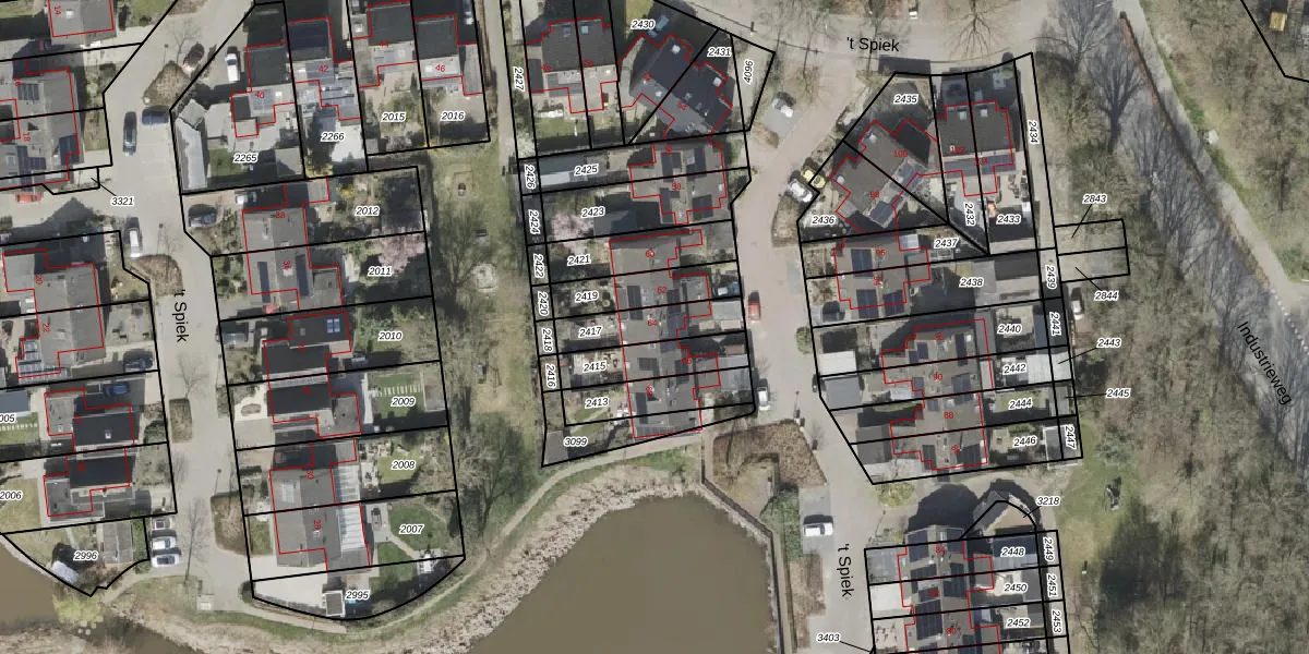 Gebruik de zoekbalk of klik op een perceel voor informatie over de adressen binnen dit perceel.