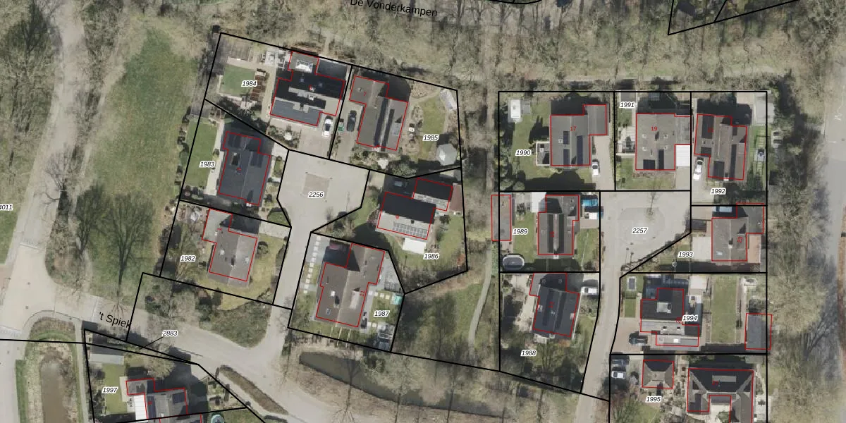 Het perceel waarop 't Spiek 9 staat heeft een oppervlakte van 615 m². Dit is een groot perceel. De perceeloppervlakte wordt geregistreerd door het Kadaster. Gedetailleerde informatie over de maten van dit perceel kunt u vinden in het rapport Kadastrale kaart met maatvoering van 't Spiek 9.