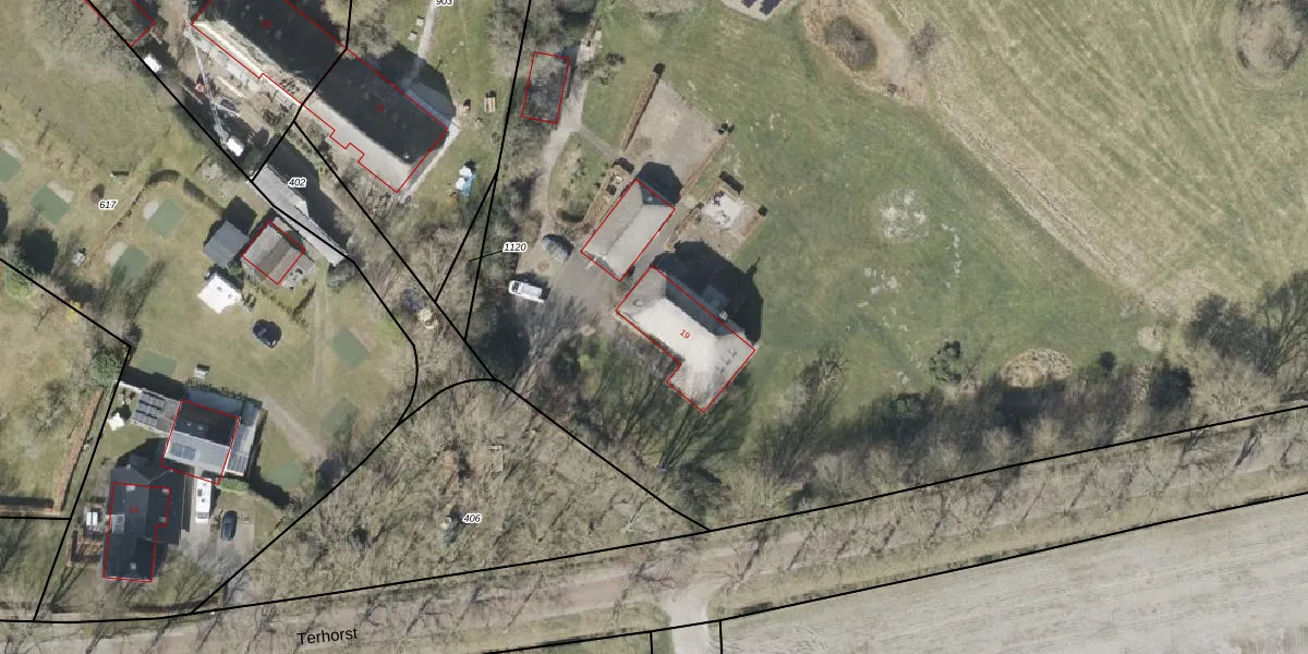Het perceel waarop Terhorst 19 staat heeft een oppervlakte van 2,9 ha. Dit is een zeer groot perceel. De perceeloppervlakte wordt geregistreerd door het Kadaster. Gedetailleerde informatie over de maten van dit perceel kunt u vinden in het rapport Kadastrale kaart met maatvoering van Terhorst 19.