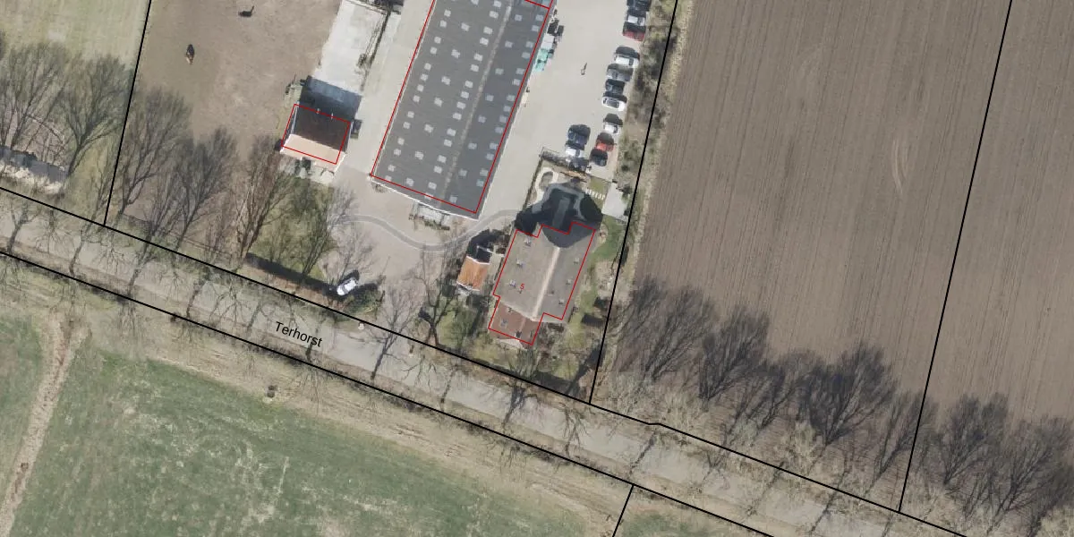 Het perceel waarop Terhorst 5 staat heeft een oppervlakte van 3,8 ha. Dit is een zeer groot perceel. De perceeloppervlakte wordt geregistreerd door het Kadaster. Gedetailleerde informatie over de maten van dit perceel kunt u vinden in het rapport Kadastrale kaart met maatvoering van Terhorst 5.