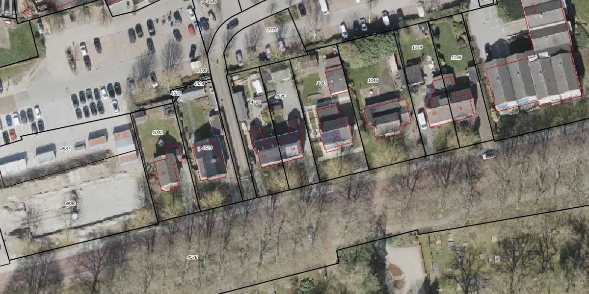 Gebruik de zoekbalk of klik op een perceel voor informatie over de adressen binnen dit perceel.