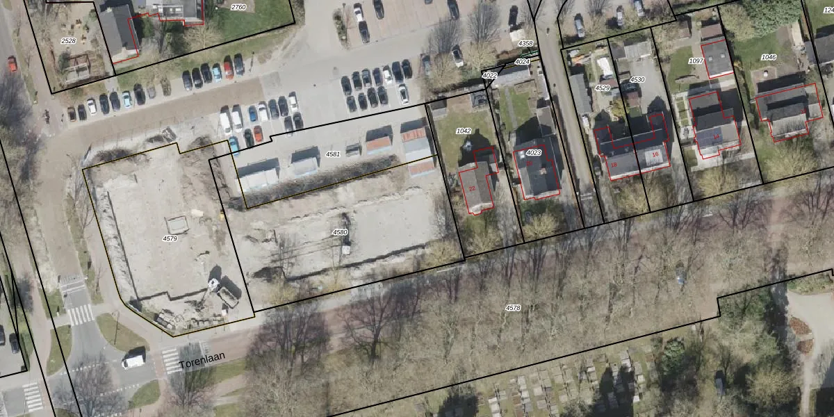 Torenlaan 24 is gelegen op kadastraal perceel BLN00M4580. Deze kadastrale aanduiding is uniek en wordt gebruikt door het Kadaster om eigendomsrechten en andere zakelijke rechten vast te leggen. Het perceel maakt onderdeel uit van de kadastrale gemeente Beilen.