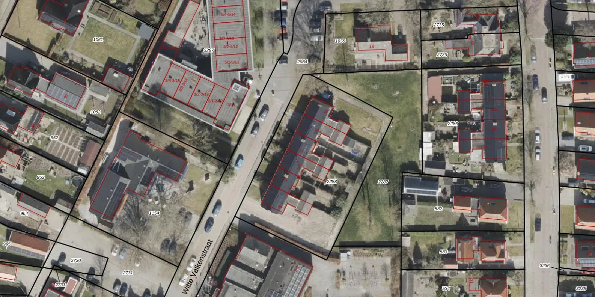 Het perceel waarop Witte Valkenstraat 12 staat heeft een oppervlakte van 1815 m². Dit is een zeer groot perceel. De perceeloppervlakte wordt geregistreerd door het Kadaster. Gedetailleerde informatie over de maten van dit perceel kunt u vinden in het rapport Kadastrale kaart met maatvoering van Witte Valkenstraat 12.