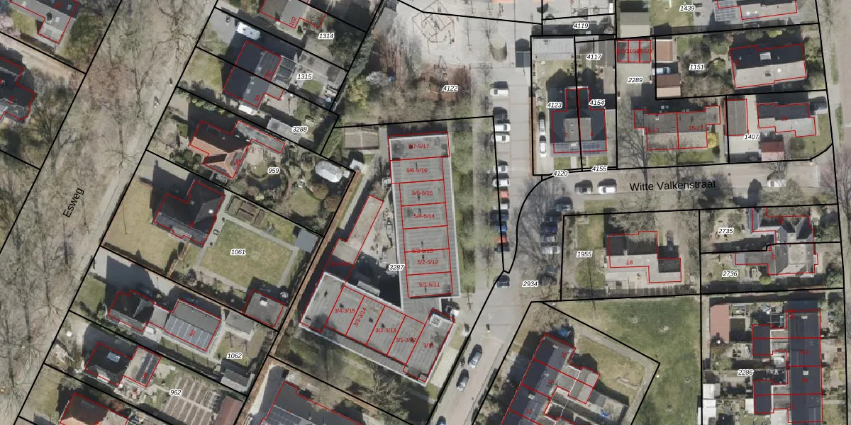 Witte Valkenstraat 5-14 is gelegen op kadastraal perceel BLN00M3287. Deze kadastrale aanduiding is uniek en wordt gebruikt door het Kadaster om eigendomsrechten en andere zakelijke rechten vast te leggen. Het perceel maakt onderdeel uit van de kadastrale gemeente Beilen.
