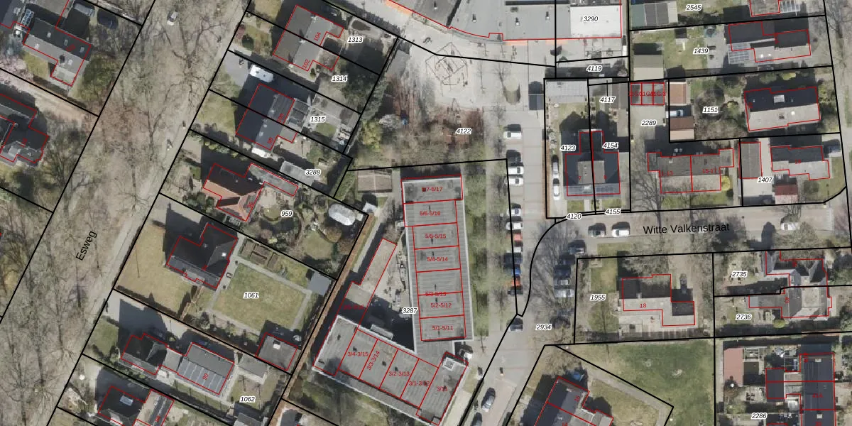 Witte Valkenstraat 5-6 is gelegen op kadastraal perceel BLN00M3287. Deze kadastrale aanduiding is uniek en wordt gebruikt door het Kadaster om eigendomsrechten en andere zakelijke rechten vast te leggen. Het perceel maakt onderdeel uit van de kadastrale gemeente Beilen.