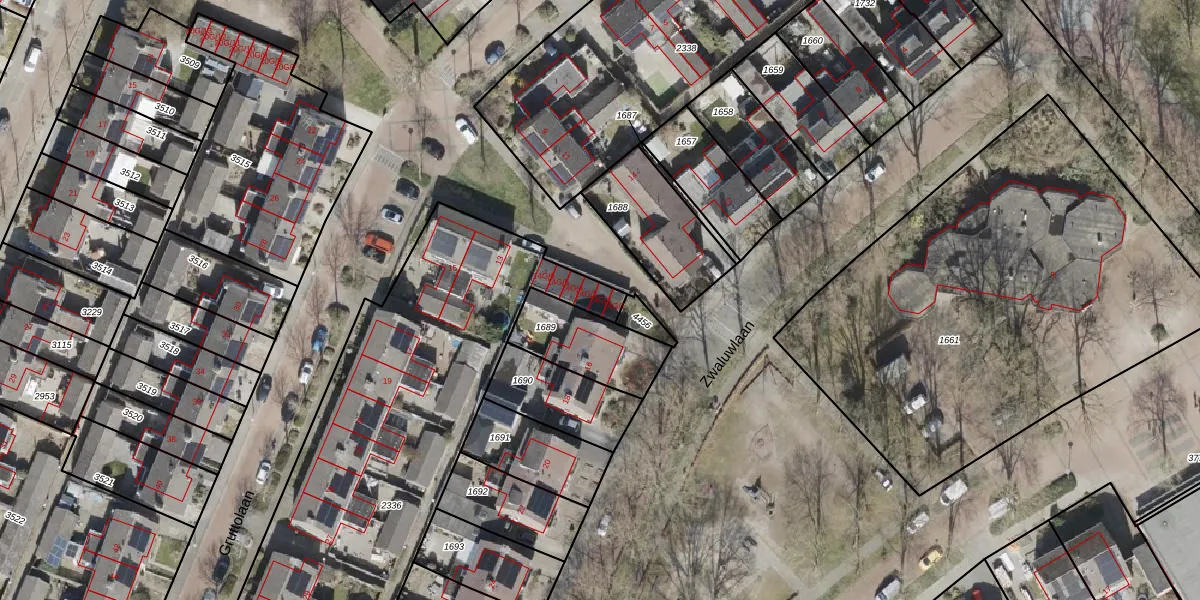 Het perceel waarop Zwaluwlaan 14-G-2 staat heeft een oppervlakte van 2265 m². Dit is een zeer groot perceel. De perceeloppervlakte wordt geregistreerd door het Kadaster. Gedetailleerde informatie over de maten van dit perceel kunt u vinden in het rapport Kadastrale kaart met maatvoering van Zwaluwlaan 14-G-2.
