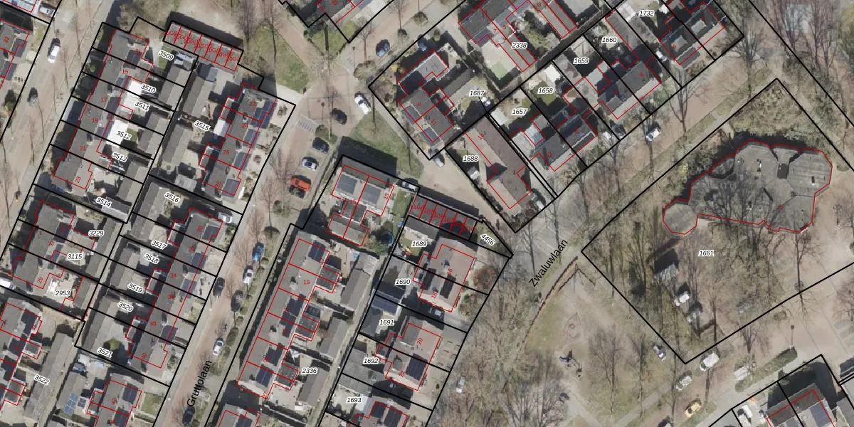 Het perceel waarop Zwaluwlaan 14-G-5 staat heeft een oppervlakte van 2265 m². Dit is een zeer groot perceel. De perceeloppervlakte wordt geregistreerd door het Kadaster. Gedetailleerde informatie over de maten van dit perceel kunt u vinden in het rapport Kadastrale kaart met maatvoering van Zwaluwlaan 14-G-5.