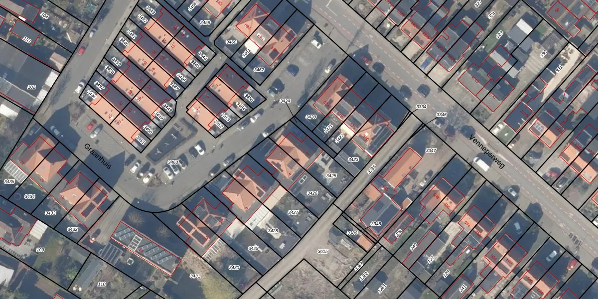 Het perceel waarop Graanhuis 2 staat heeft een oppervlakte van 260 m². Dit is een middelgroot perceel. De perceeloppervlakte wordt geregistreerd door het Kadaster. Gedetailleerde informatie over de maten van dit perceel kunt u vinden in het rapport Kadastrale kaart met maatvoering van Graanhuis 2.