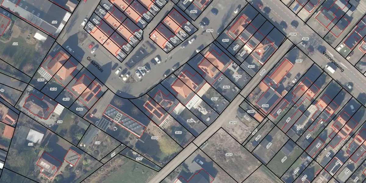 Het perceel waarop Graanhuis 8 staat heeft een oppervlakte van 320 m². Dit is een groot perceel. De perceeloppervlakte wordt geregistreerd door het Kadaster. Gedetailleerde informatie over de maten van dit perceel kunt u vinden in het rapport Kadastrale kaart met maatvoering van Graanhuis 8.