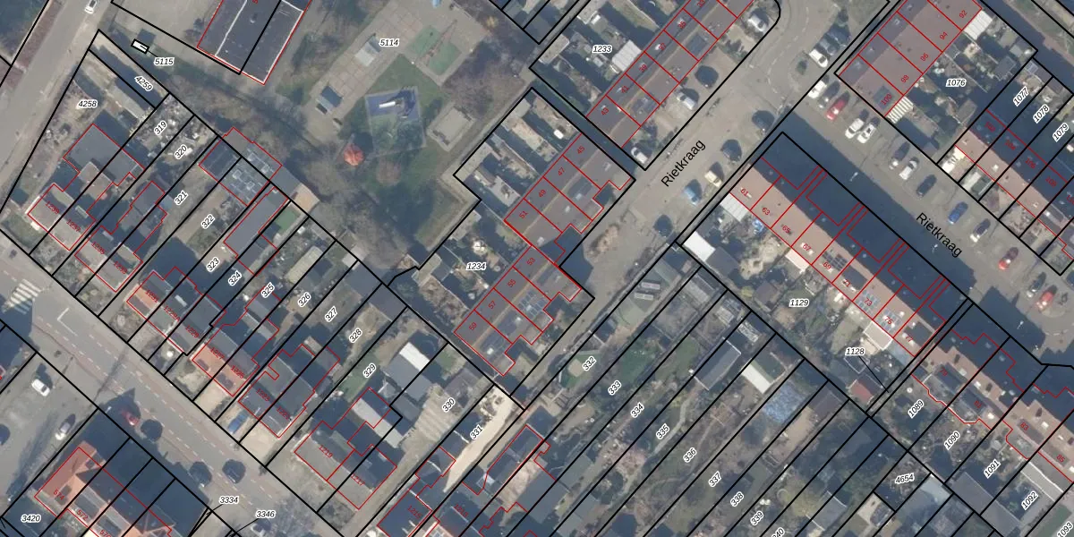 Het perceel waarop Rietkraag 53 staat heeft een oppervlakte van 1224 m². Dit is een zeer groot perceel. De perceeloppervlakte wordt geregistreerd door het Kadaster. Gedetailleerde informatie over de maten van dit perceel kunt u vinden in het rapport Kadastrale kaart met maatvoering van Rietkraag 53.