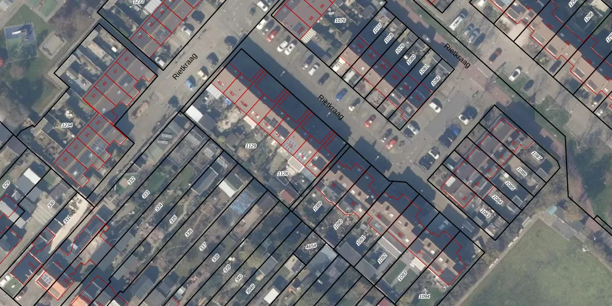 Het perceel waarop Rietkraag 75 staat heeft een oppervlakte van 1355 m². Dit is een zeer groot perceel. De perceeloppervlakte wordt geregistreerd door het Kadaster. Gedetailleerde informatie over de maten van dit perceel kunt u vinden in het rapport Kadastrale kaart met maatvoering van Rietkraag 75.