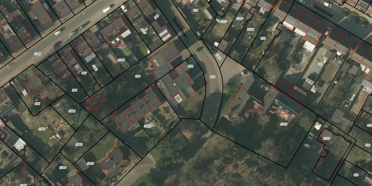 Het perceel waarop Beatrixlaan 4 staat heeft een oppervlakte van 590 m². Dit is een groot perceel. De perceeloppervlakte wordt geregistreerd door het Kadaster. Gedetailleerde informatie over de maten van dit perceel kunt u vinden in het rapport Kadastrale kaart met maatvoering van Beatrixlaan 4.