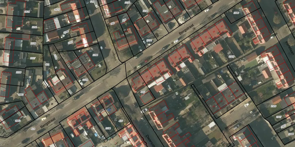 Bergstraat 24 is gelegen op kadastraal perceel BFD00F2325. Deze kadastrale aanduiding is uniek en wordt gebruikt door het Kadaster om eigendomsrechten en andere zakelijke rechten vast te leggen. Het perceel maakt onderdeel uit van de kadastrale gemeente Belfeld.