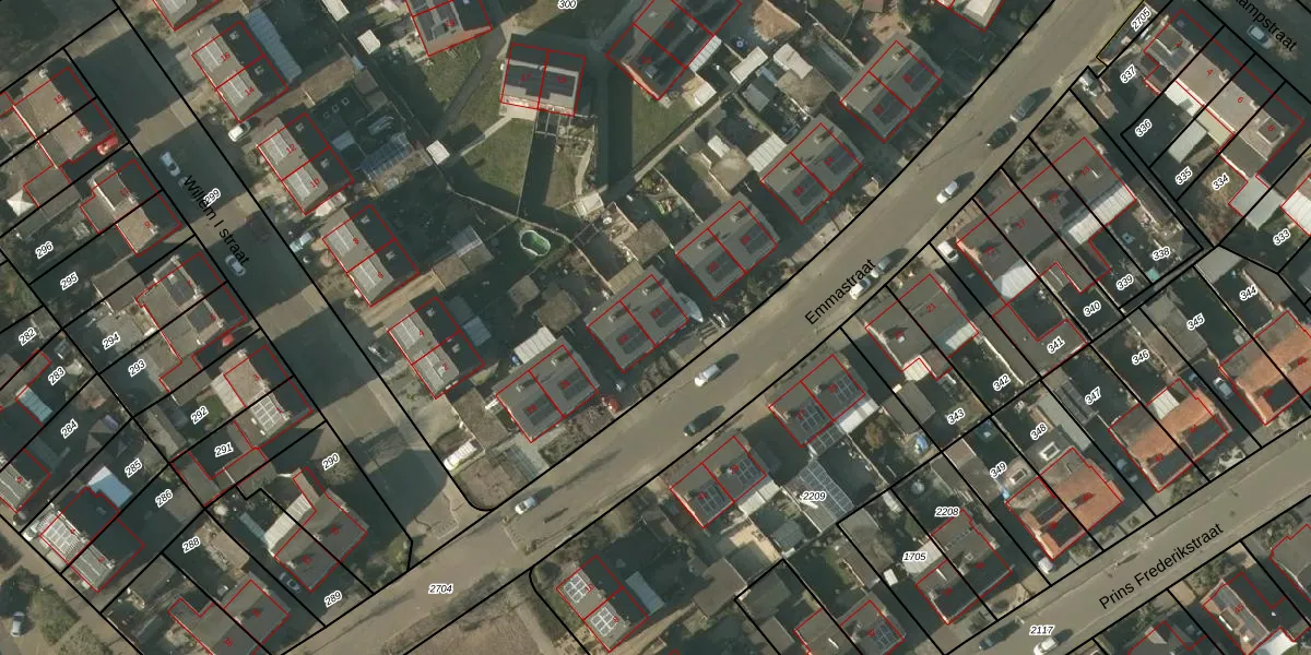 Het perceel waarop Emmastraat 22 staat heeft een oppervlakte van 9325 m². Dit is een zeer groot perceel. De perceeloppervlakte wordt geregistreerd door het Kadaster. Gedetailleerde informatie over de maten van dit perceel kunt u vinden in het rapport Kadastrale kaart met maatvoering van Emmastraat 22.