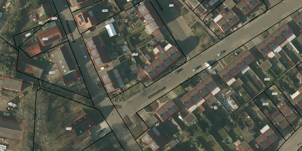 Het perceel waarop Emmastraat 52 staat heeft een oppervlakte van 2655 m². Dit is een zeer groot perceel. De perceeloppervlakte wordt geregistreerd door het Kadaster. Gedetailleerde informatie over de maten van dit perceel kunt u vinden in het rapport Kadastrale kaart met maatvoering van Emmastraat 52.